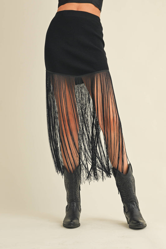 Knit Skirt with Long Fringe- ready to ship