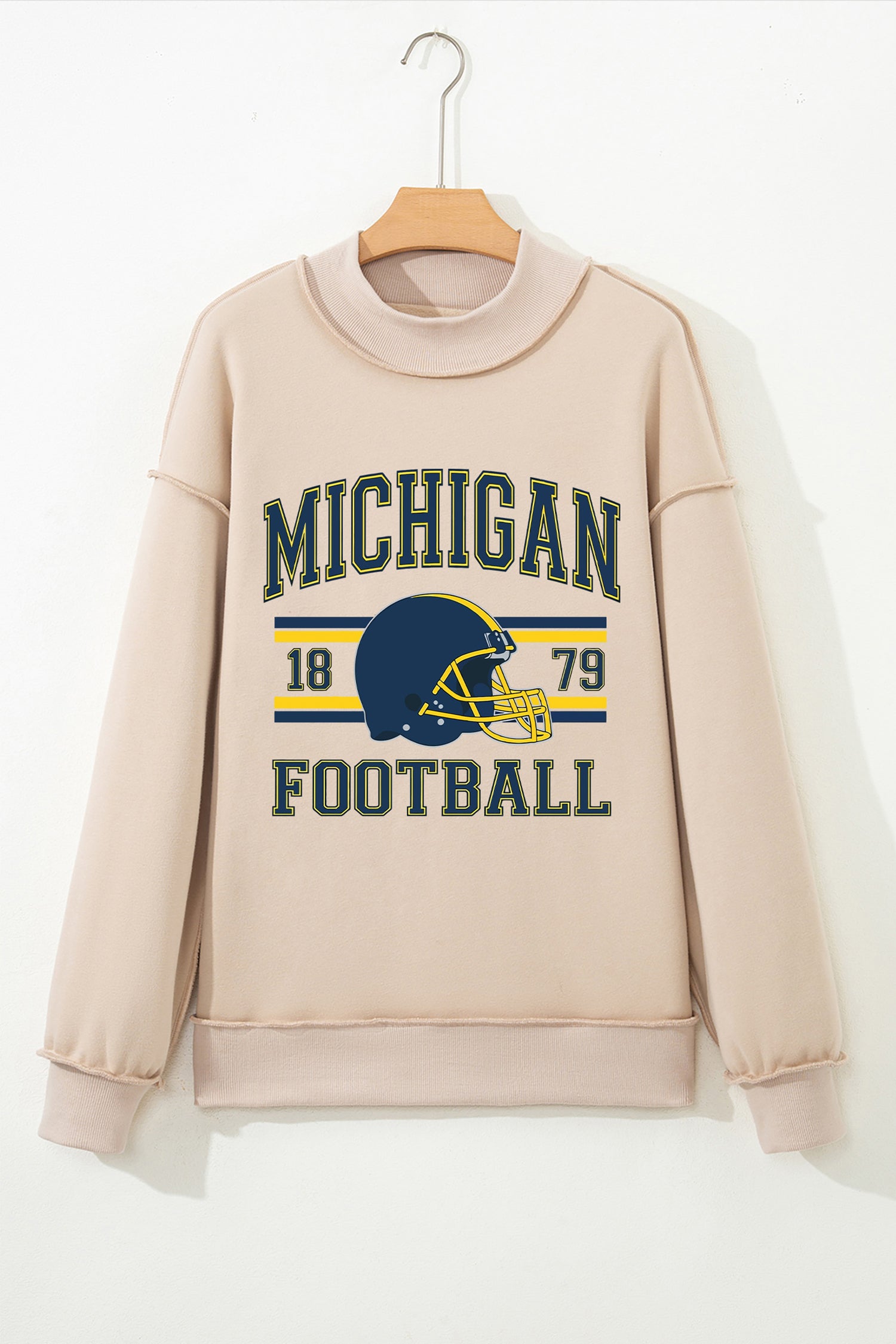 Apricot MICHIGAN FOOTBALL Double Side Printed Reversible Mock Neck Sweatshirt