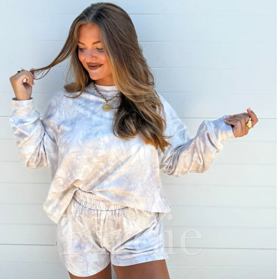 The BIRDIE Butter Camo Set in Vanilla Cream is a luxuriously soft and stylish lounge set that combines comfort with a trendy camo twist. Featuring a subtle cream-toned camouflage print, this set includes a relaxed-fit top and matching bottoms designed for effortless wear.