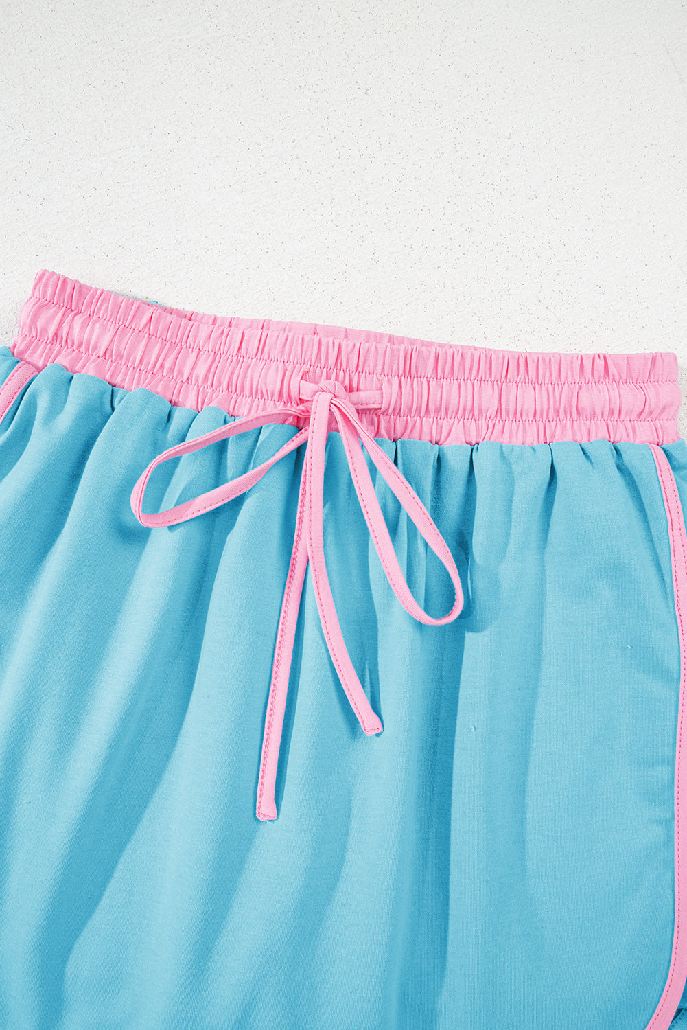Black Colorblock Edge Drop Shoulder T Shirt and Skort 2Pcs Set