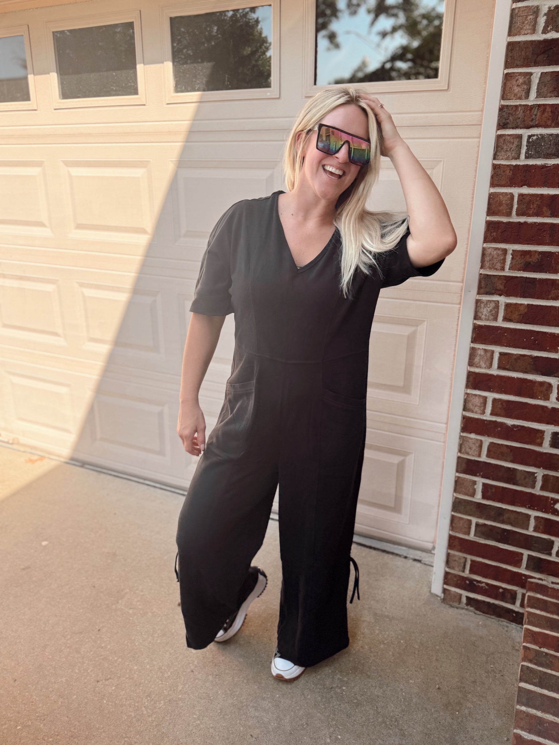 Crafted from a buttery-soft washed cotton fabric, this piece features a relaxed yet flattering fit with a V-neckline, zip-up back, roomy pockets, and adjustable cinch cuffs at the ankles for a custom vibe. Whether you’re dressing it up with boots or keeping it casual with sandals, this jumpsuit is your throw-on-and-go fave