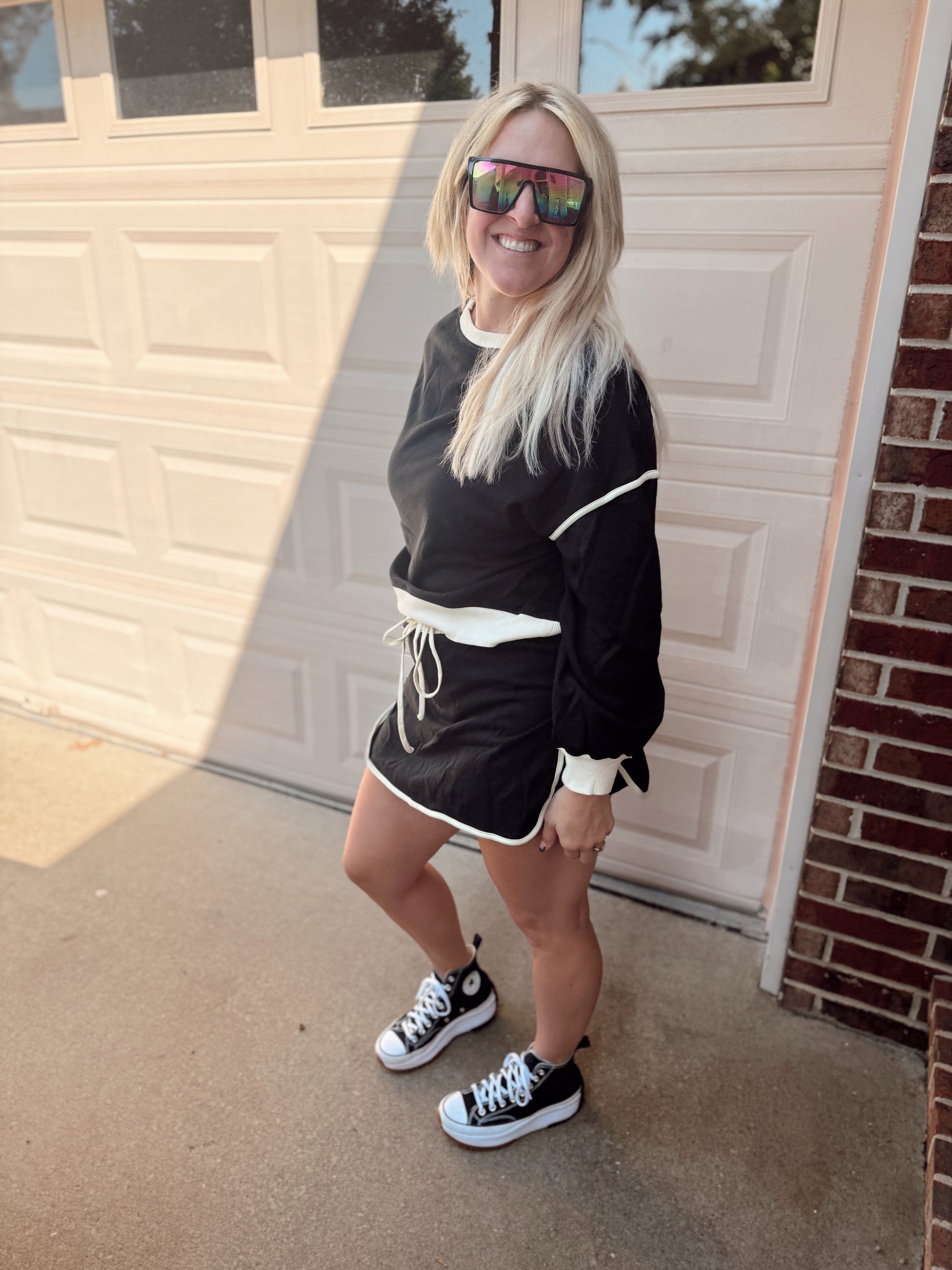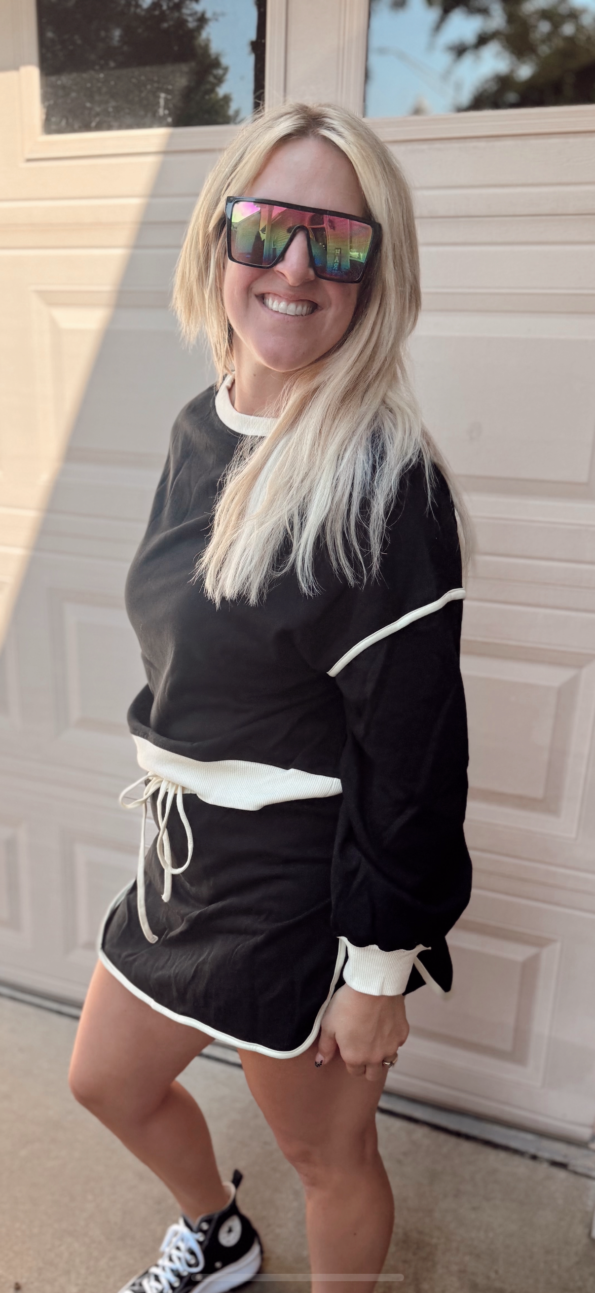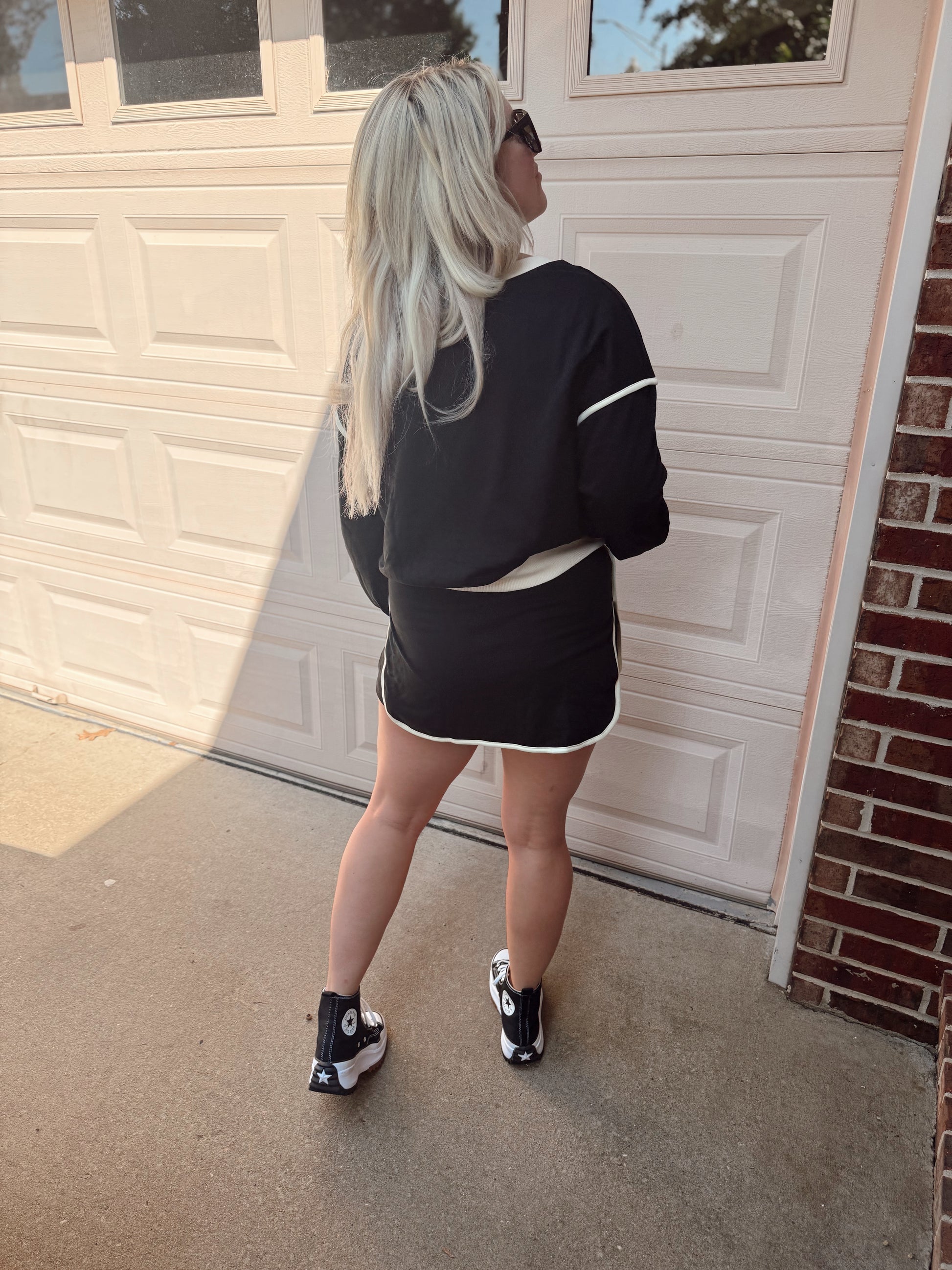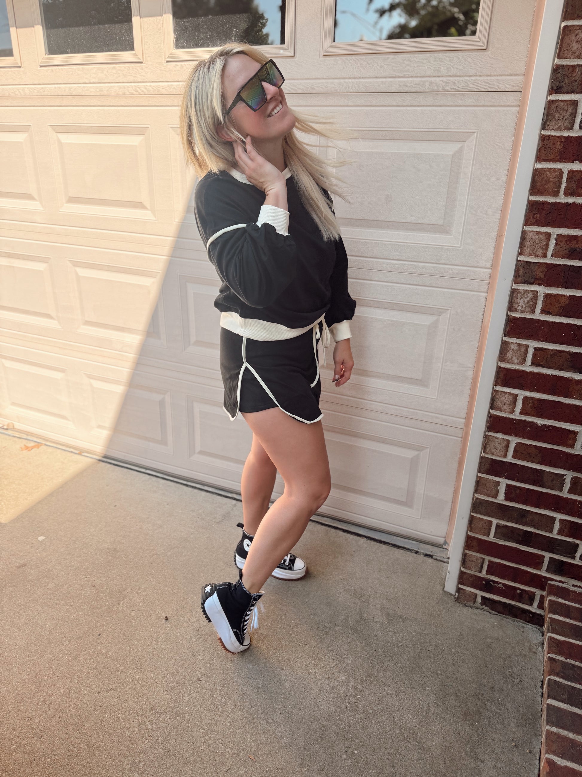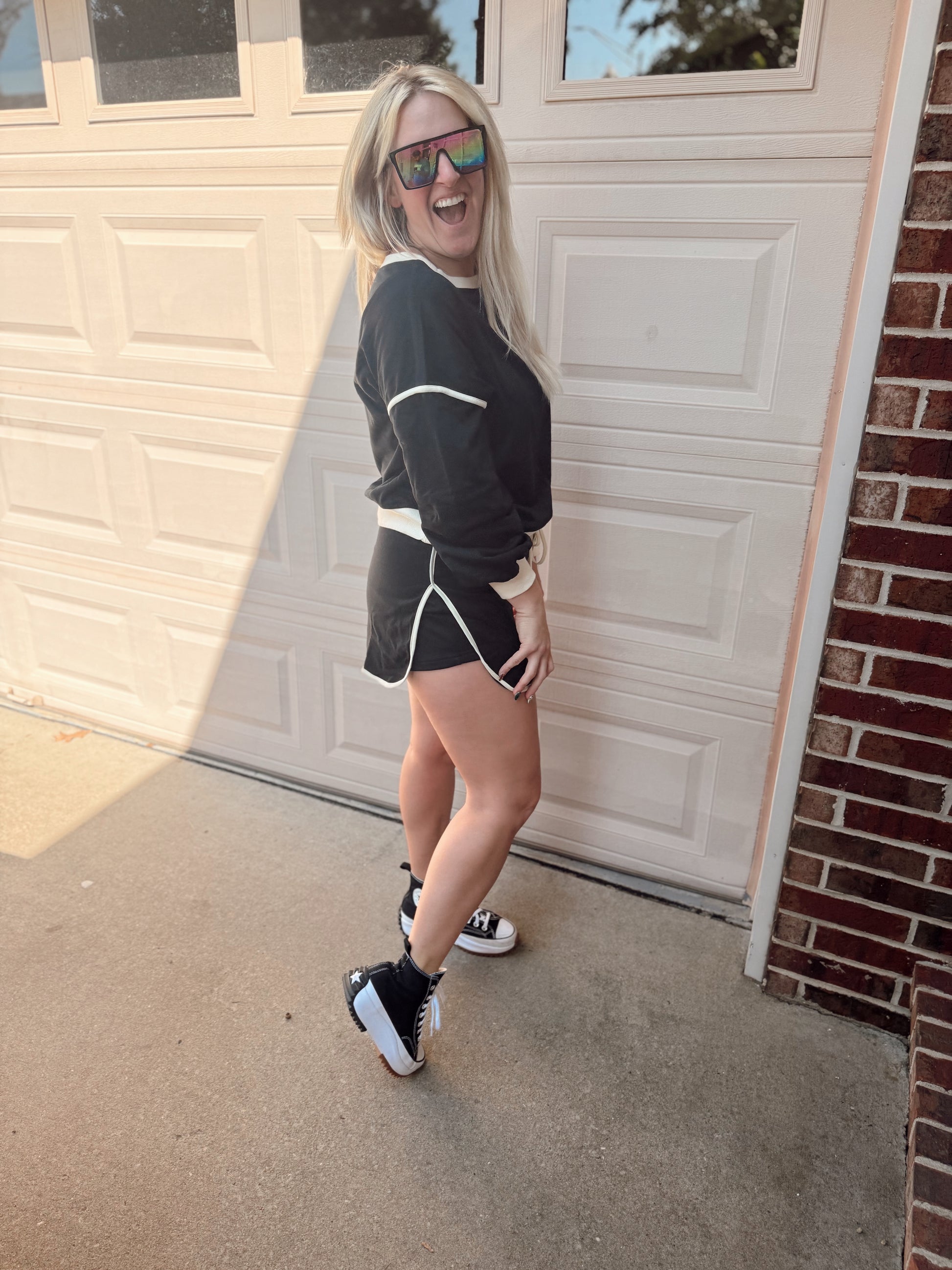 Enjoy a relaxed and laid-back vibe with the loose fit skort set.
