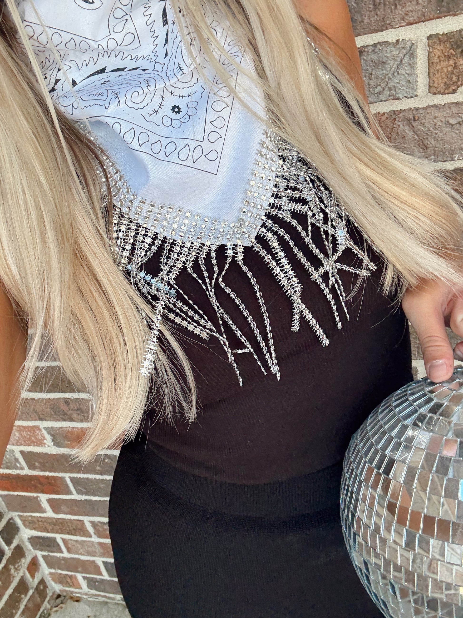 Discover the unique blend of style and comfort with the CT9827 from Cloud Ten. This contemporary fit bandana scarf top is the perfect addition to your spring/summer wardrobe. Its accent detail gives it a trendy, chic, and edgy look that pays homage to the modern contemporary woman. For care, simply toss it in the machine for a wash. From design to production, every step is meticulously overseen to bring this creation to life. Enhance your style with Cloud Ten.