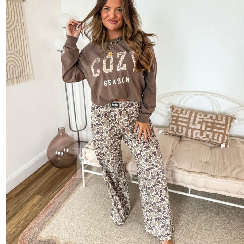 Camo Cozy Season Graphic Long Sleeve Tee READY TO SHIP!!