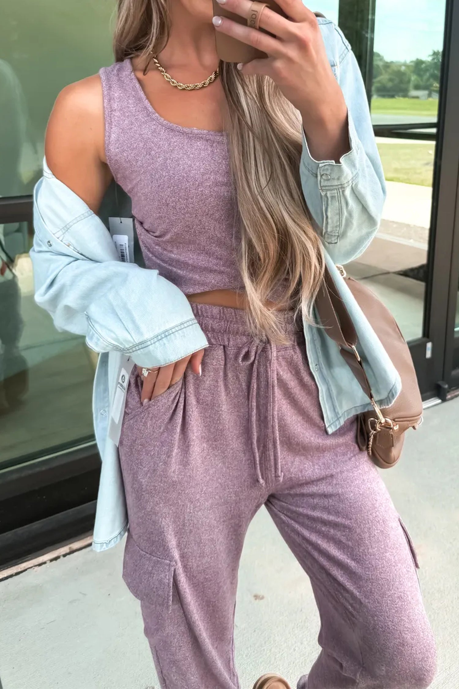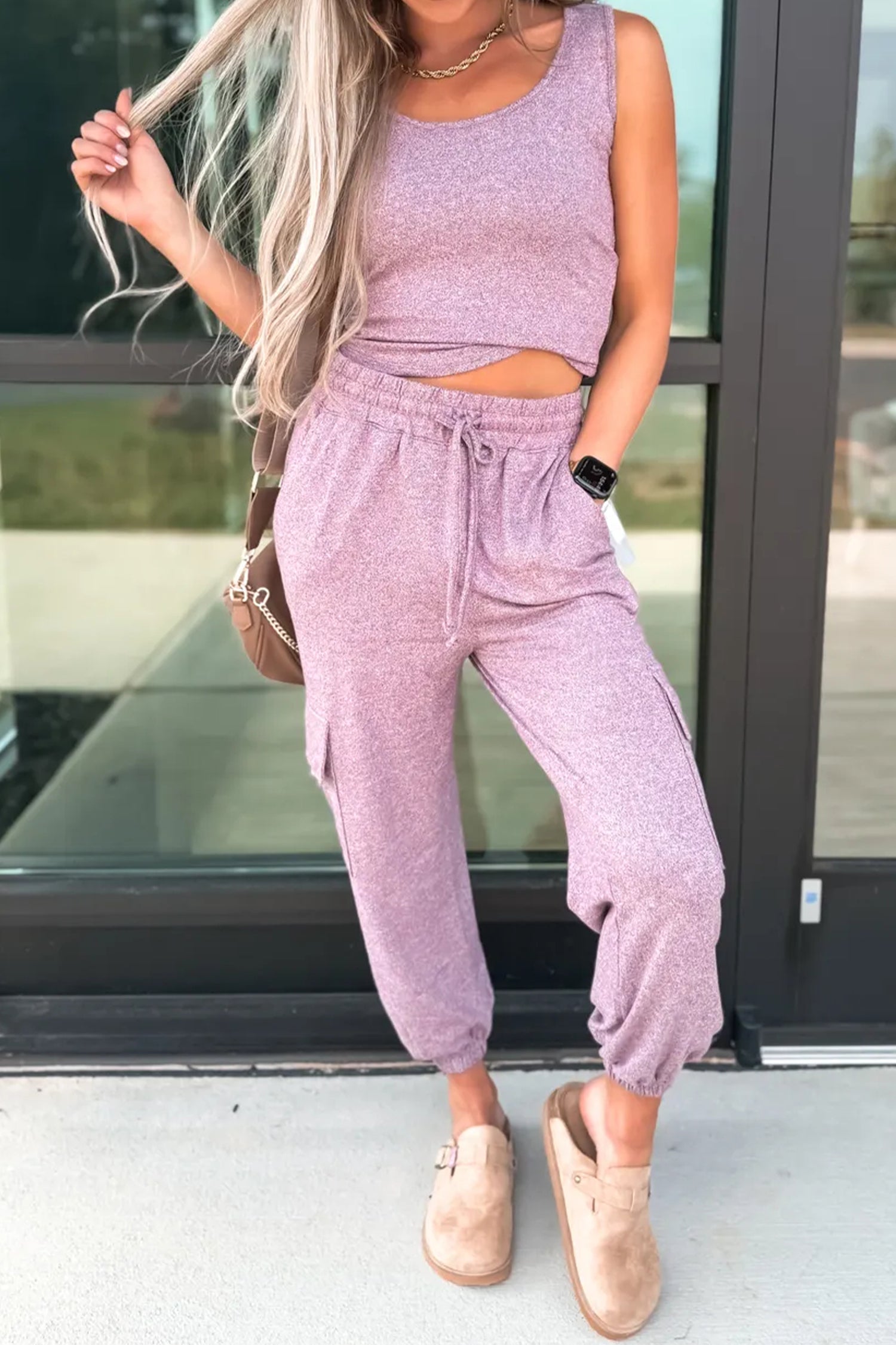 Casual Tank Top Drawstring Jogger Pants 2pcs Outfit